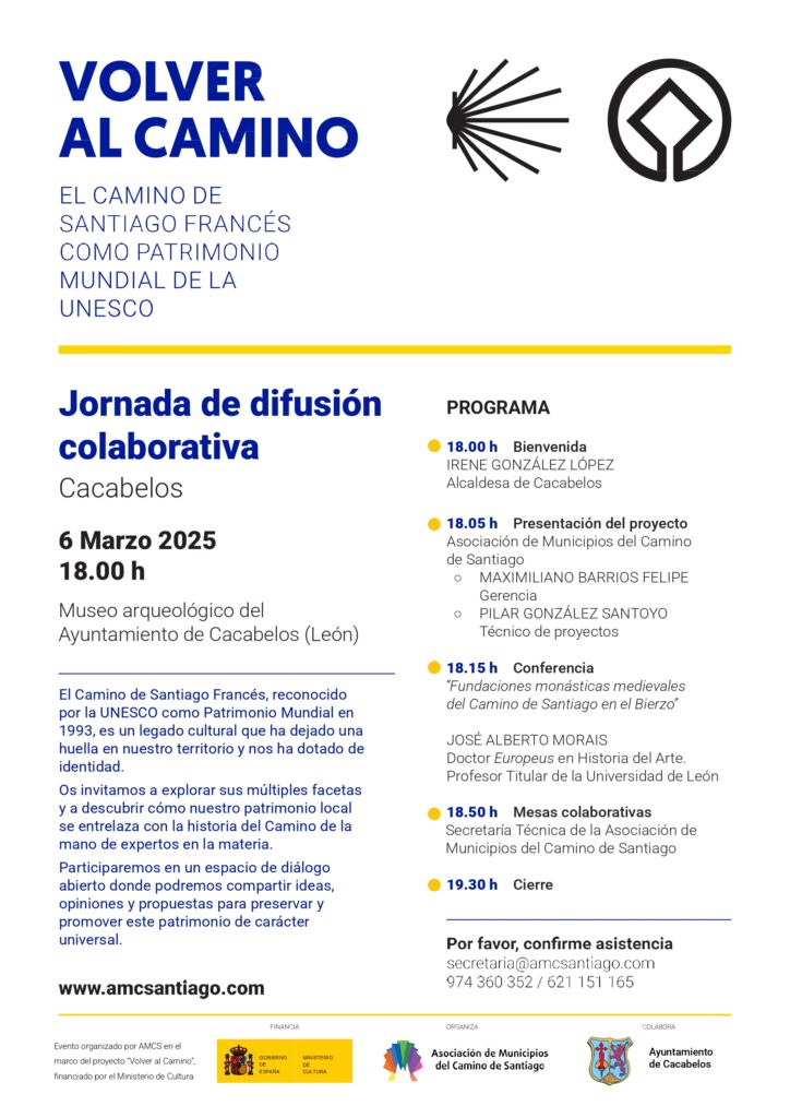 Con el proyecto Volver al Camino, os invitamos a explorar sus múltiples facetas y a descubrir cómo nuestro patrimonio local se entrelaza con la historia del Camino de la mano de expertos en la materia. Participaremos en un espacio de diálogo abierto donde podremos compartir ideas, opiniones y propuestas para preservar y promover este patrimonio de carácter universal.
