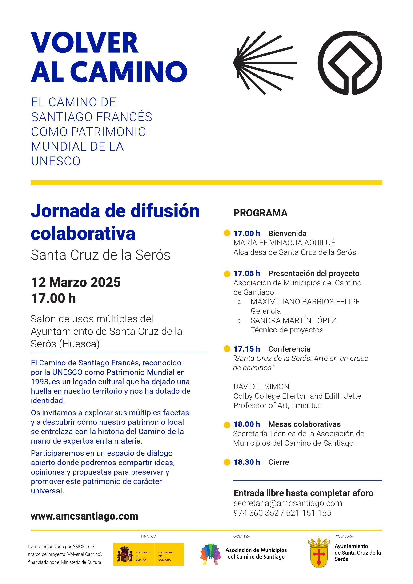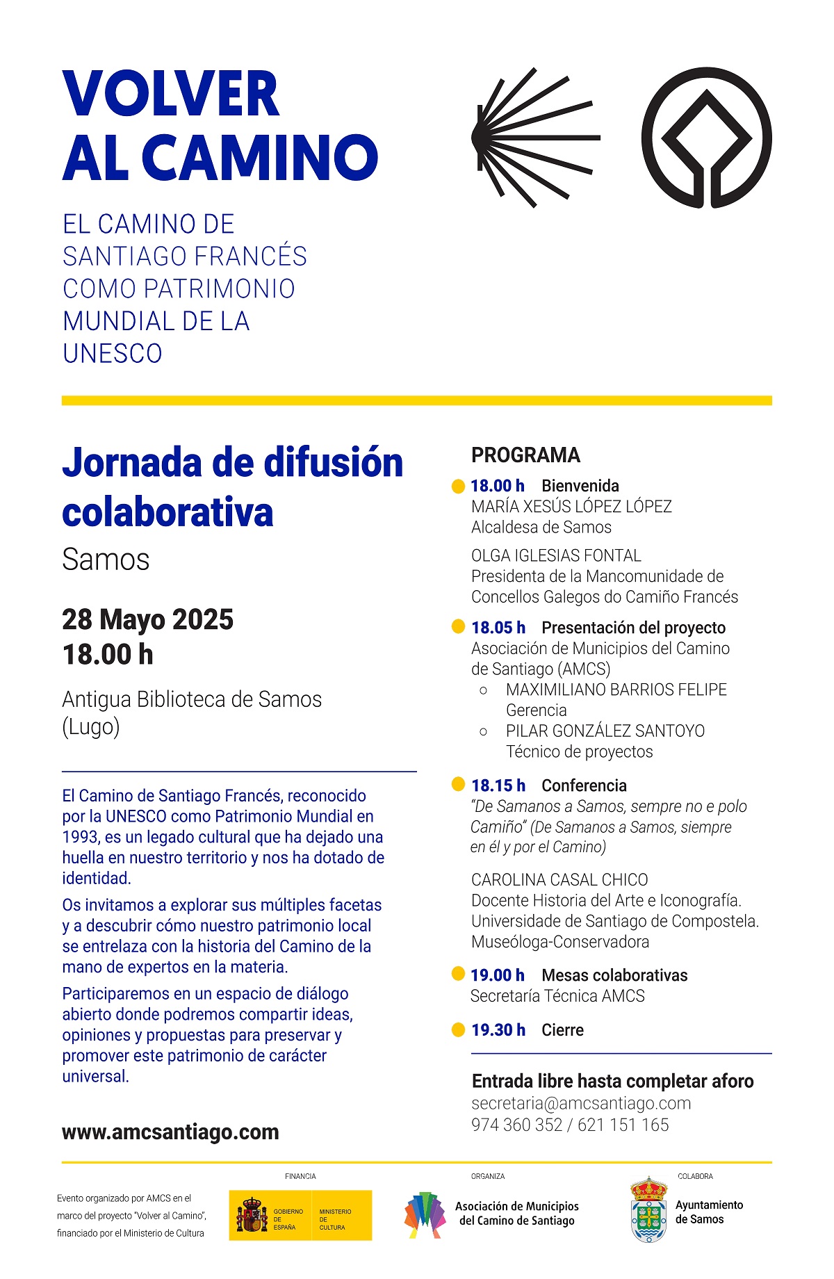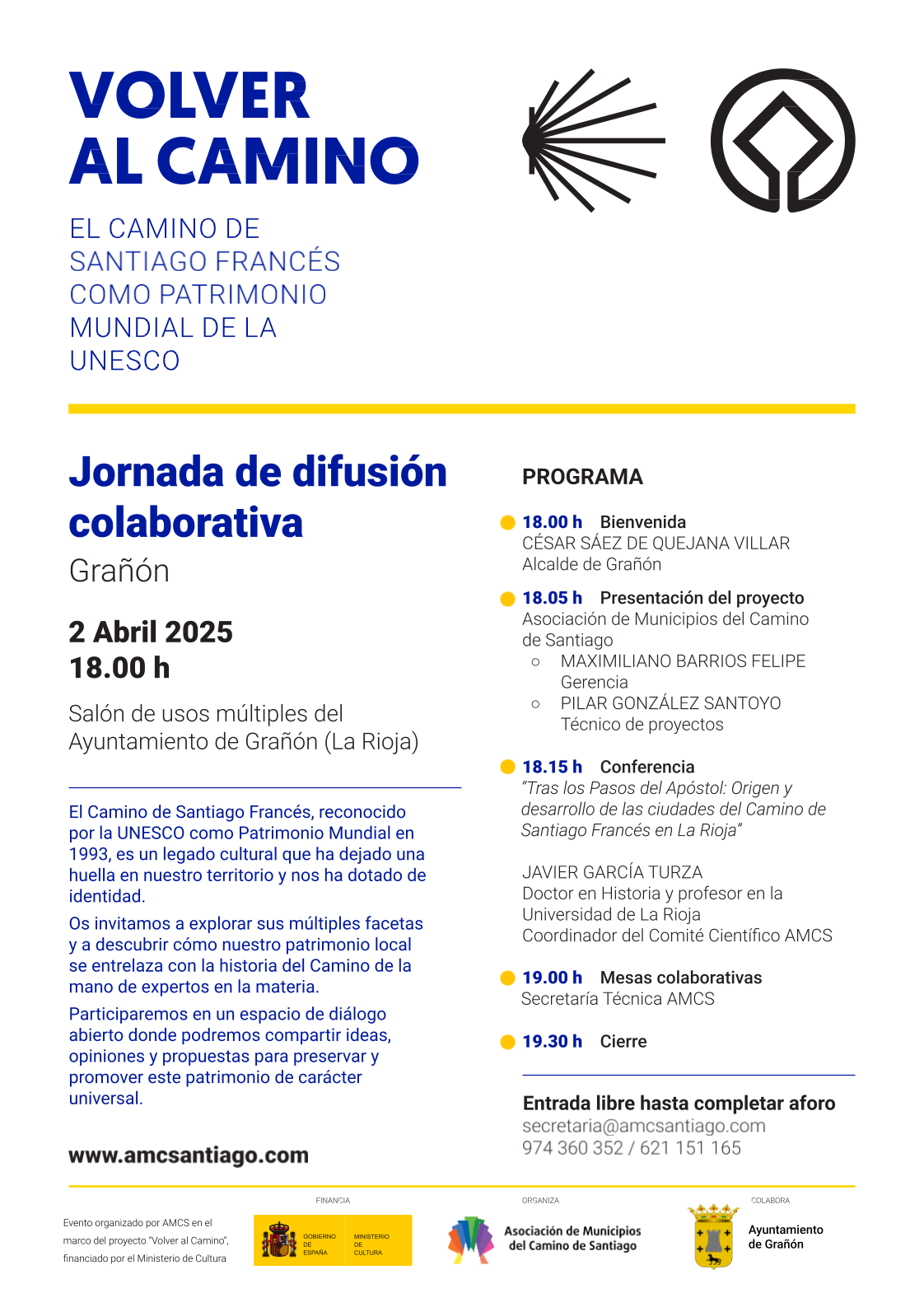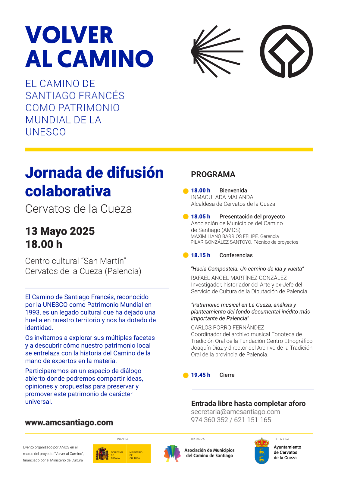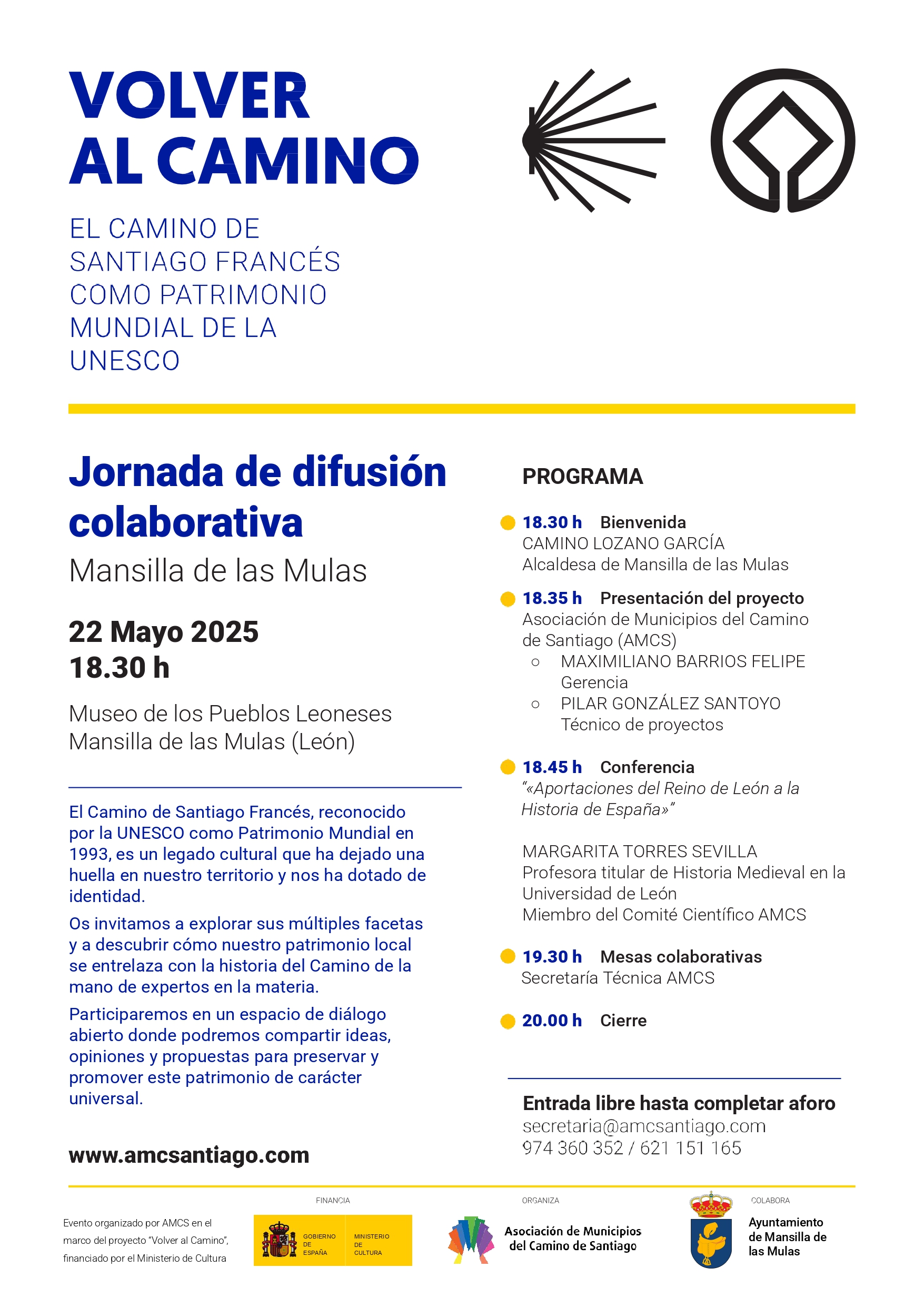 La Asociación de Municipios del Camino de Santiago, gracias al apoyo del Ministerio de Cultura a través de su programa de ayudas para la protección y difusión de bienes del Patrimonio Mundial 2024, está llevando a cabo el proyecto «Volver al Camino».